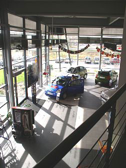 Zaprojektowana stacja dilerska musiała spełnić wymogi stawiane autoryzowanym przedstawicielom znanego producenta samochodów. Przewidziany program zakładał realizację nowoczesnego salonu samochodowego z zapleczem biurowym i stacją ASO. Dwubryłowy obiekt zlokalizowano przy głównej trasie komunikacyjnej regionu z Katowic do Warszawy. Zwartą bryłę salonu wykonano w konstrukcji stalowej pokrytej fasadą szklaną. Ścięty narożnik pochyla się w kierunku przejeżdżających samochodów przyciągając wzrok i wyróżniając się na tle sąsiedniej zabudowy. Zastosowano nowoczesne rozwiązania przestrzenne wewnątrz obiektu ułatwiające zmianę aranżacji w zależności od potrzeb właściciela a także czytelne i płynne przechodzenie od procesu wyboru auta i jego zamówienia do jego odbioru po dokonaniu niezbędnych przeglądów.