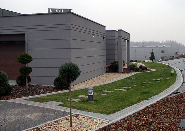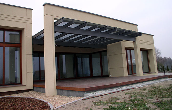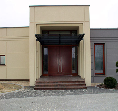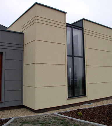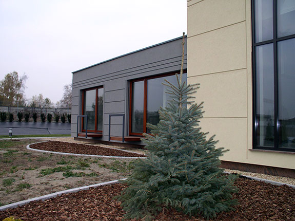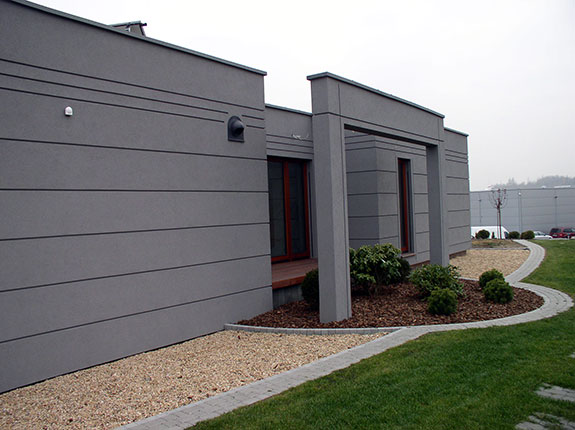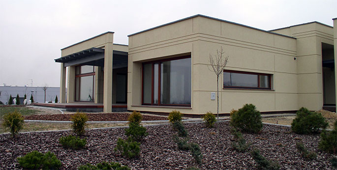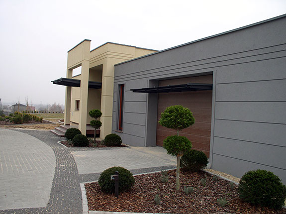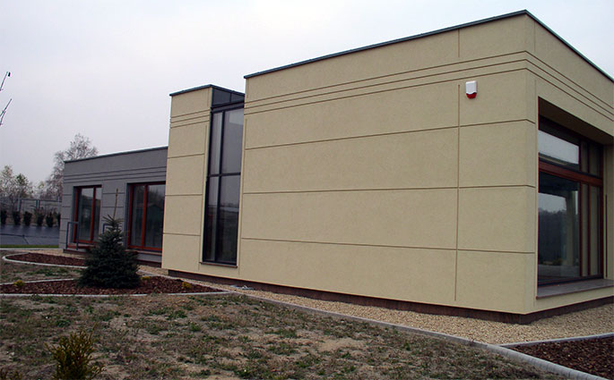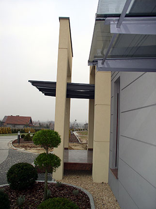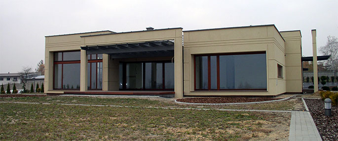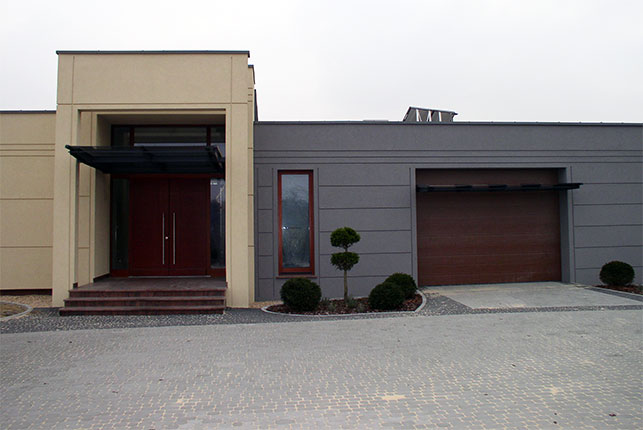 Obiekt zbudowany z dwóch brył o różnej wielkości i kolorystyce z zastosowaniem minimalistycznego detalu. Całość rozrzeźbiona wnękami lub ryzalitami wyposażonymi w wolno stojące ramy, uzupełnione szklanymi zadaszeniami nad wejściem i zewnętrznym tarasem. Duże otwory okienne i mocno zaakcentowane wejście do budynku. Całość uzupełniona pomysłowym zagospodarowaniem terenu podporządkowana perspektywie widokowej z wnętrza budynku.