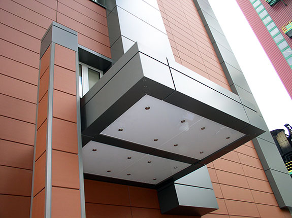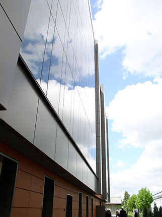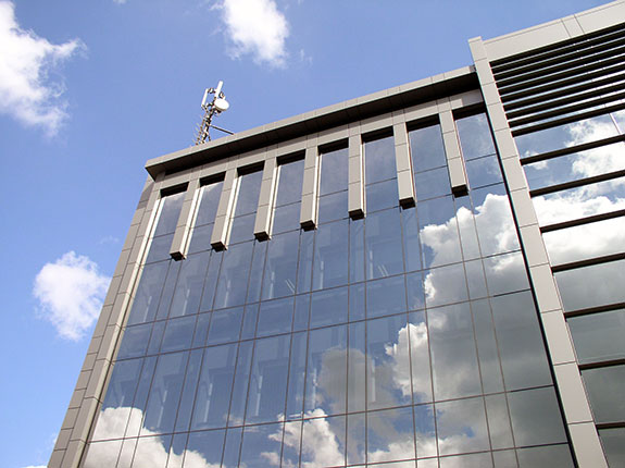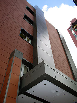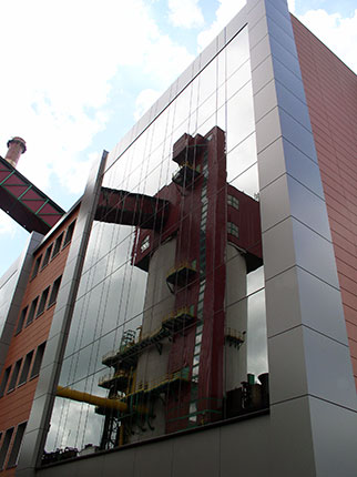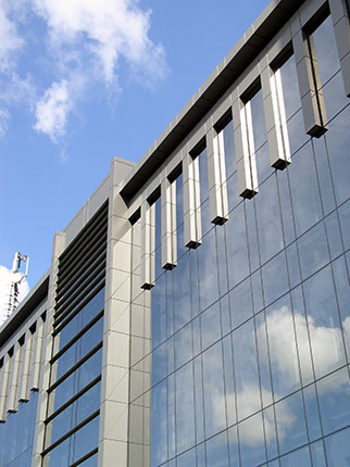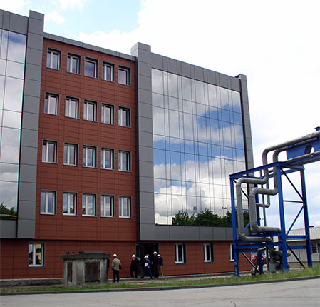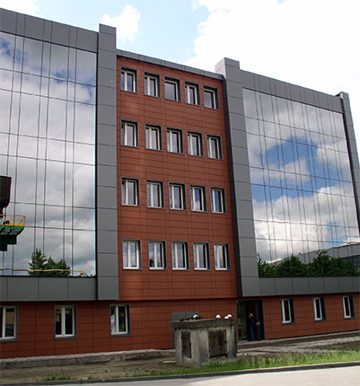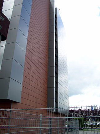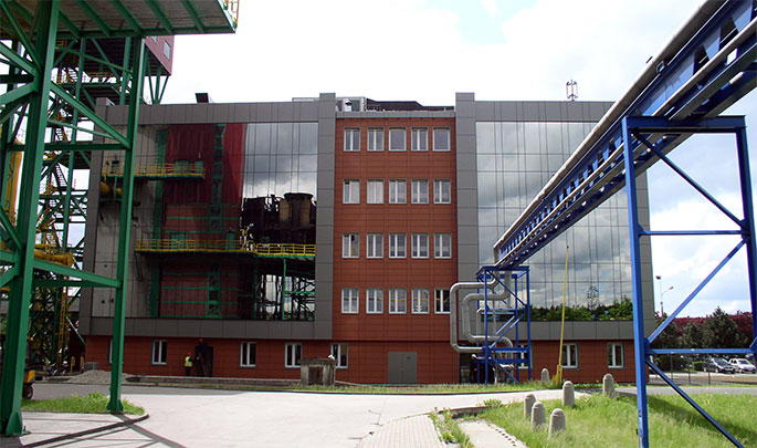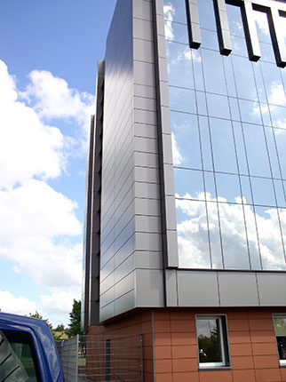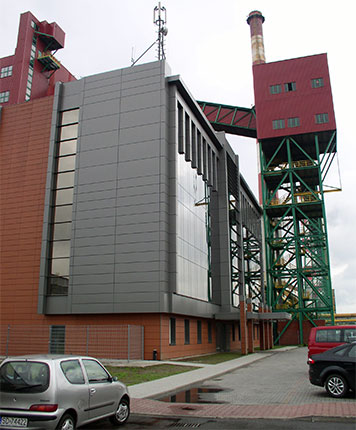 Bryła biurowca z lat 80-siątych została obłożona okładziną ceramiczną ARGETON, okładzina aluminiową ALUCOBOND oraz fasadą szklaną zmieniając drastycznie pierwotny wygląd. Zadbano o detale uzupełniające bryłę oraz strefę wejściową budynku wraz z niezbędnym oświetleniem. Całą okładzinę zrealizowano jako tzw. „drugą skórę” co w przypadku przeszklenia sprowadza się do wentylowanej przestrzeni wyposażonej w ażurowe pomosty pozwalające na utrzymanie szkła w czystości. Pod okładziną schowano całą instalację wyciągową wentylacji mechanicznej minimalizując w ten sposób ingerencję w funkcjonujący obiekt. Budynek wymaga dokończenia instalacji nawiewnej przy realizacji zaprojektowanego remontu wewnętrznych pomieszczeń.