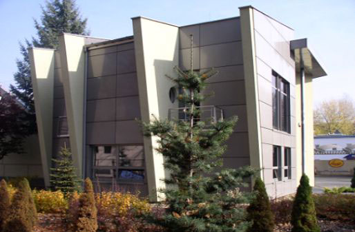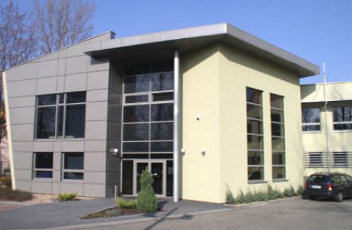 Zakres prac projektowych obejmował zmianę elewacji budynku w części istniejącej oraz rozbudowę istniejącego obiektu wraz z projektami wnętrz. W dobudowywanej części zlokalizowano sale konferencyjne oraz gabinety zarządu. Banalną architekturę istniejącej części uporządkowano i urozmaicono wprowadzając detale nawiązujące do profilu działalności firmy. Powstało reprezentacyjne wejście podkreślone przez smukłą kolumnę podtrzymującą zadaszenie które prowadzi do holu z recepcją i schodów otwartych na hol. Wysokie przeszklenie umożliwia wgląd ze schodów na parking jak również doskonale je doświetla. Pastelowe kolory tynków wewnętrznych, wykładzin i mebli nadają łagodny i harmonijny charakter całemu wnętrzu. Zewnętrzna stylistyka oparta na dynamice przenikających się brył i stali użytej na fasadach podkreśla nowoczesny charakter działalności firmy.
